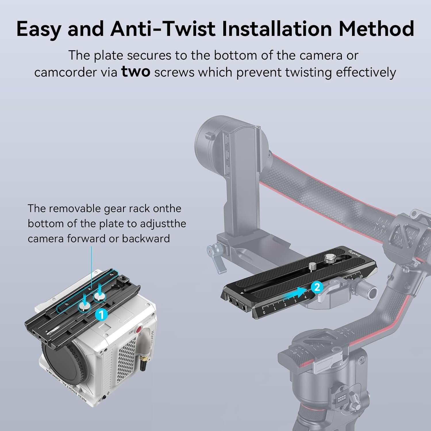 【Removable Gear Rack】There is a removable gear rack on the bottom that helps position your camera in small increments, and the measurement scales also allow you to keep balancing position for your camera.