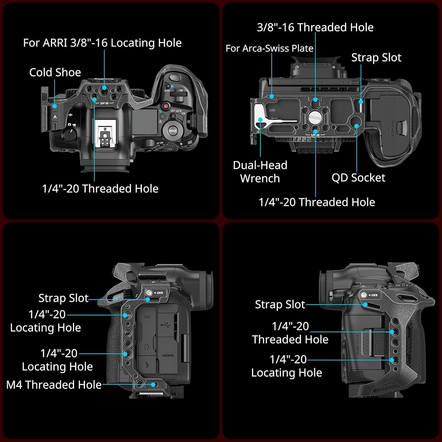 Streamlined Design: SmallRig R5 Mark II Camera Cage 4975 adopts a streamlined one-piece wrapping design, providing comprehensive protection for your camera, and ensures smooth control over the camera buttons for easy operation.