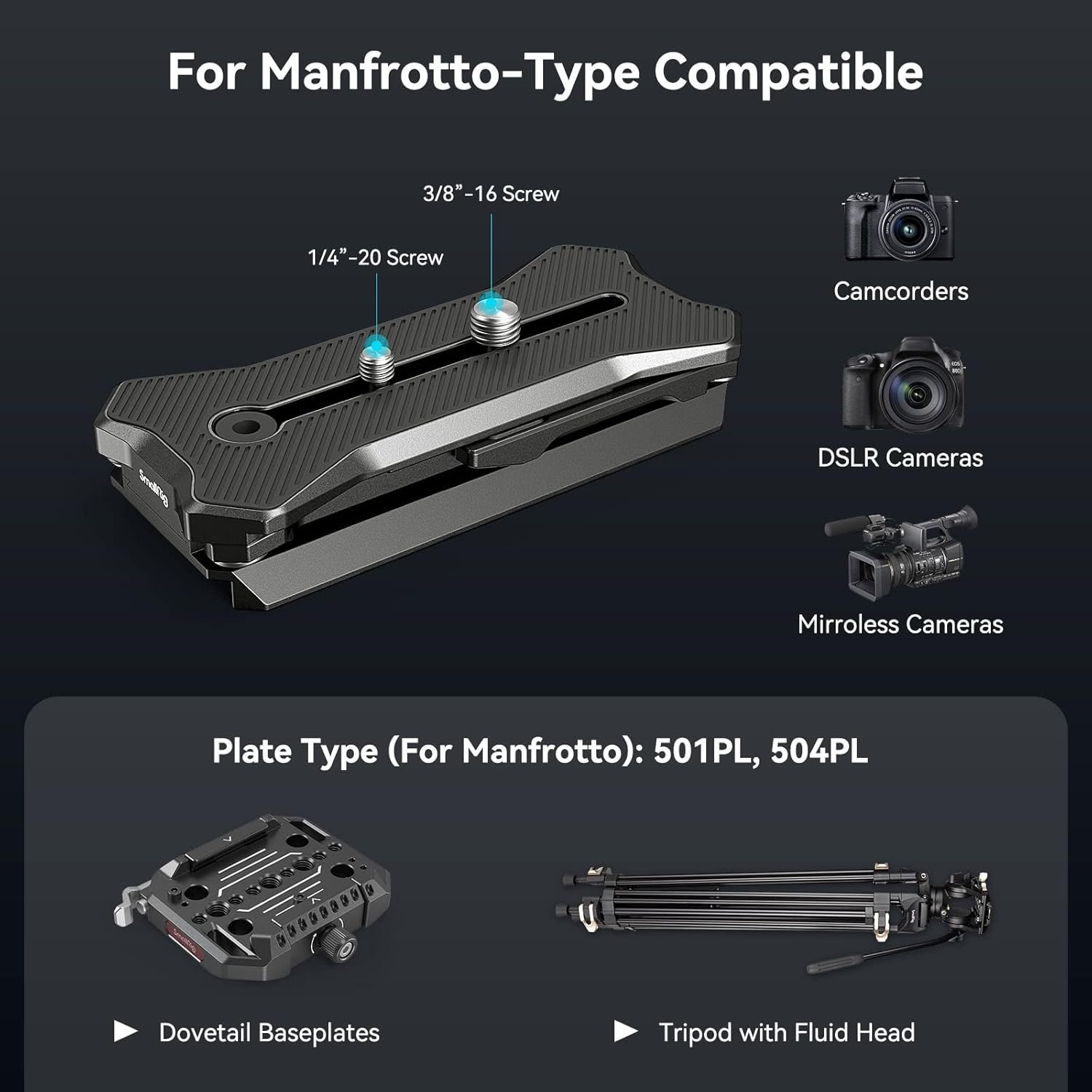 Note: This product is not compatible with SmallRig AD-100 Tripod 3989 and SmallRig DH10 Heavy Duty Tripod Fluid Video Head 4165.