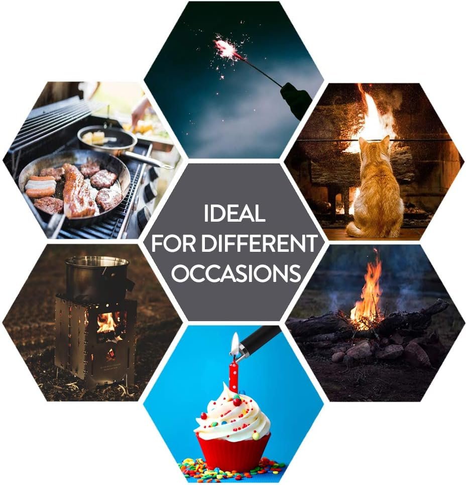 【PORTABLE & CONVENIENT 】Wind & Splash Proof Design prevents the electric pulse produced from being blown out by strong wind, The lightweight design makes the lighter easy to carry and ideal for camping, BBQ ,hiking ,indoor and outdoor activitiess.