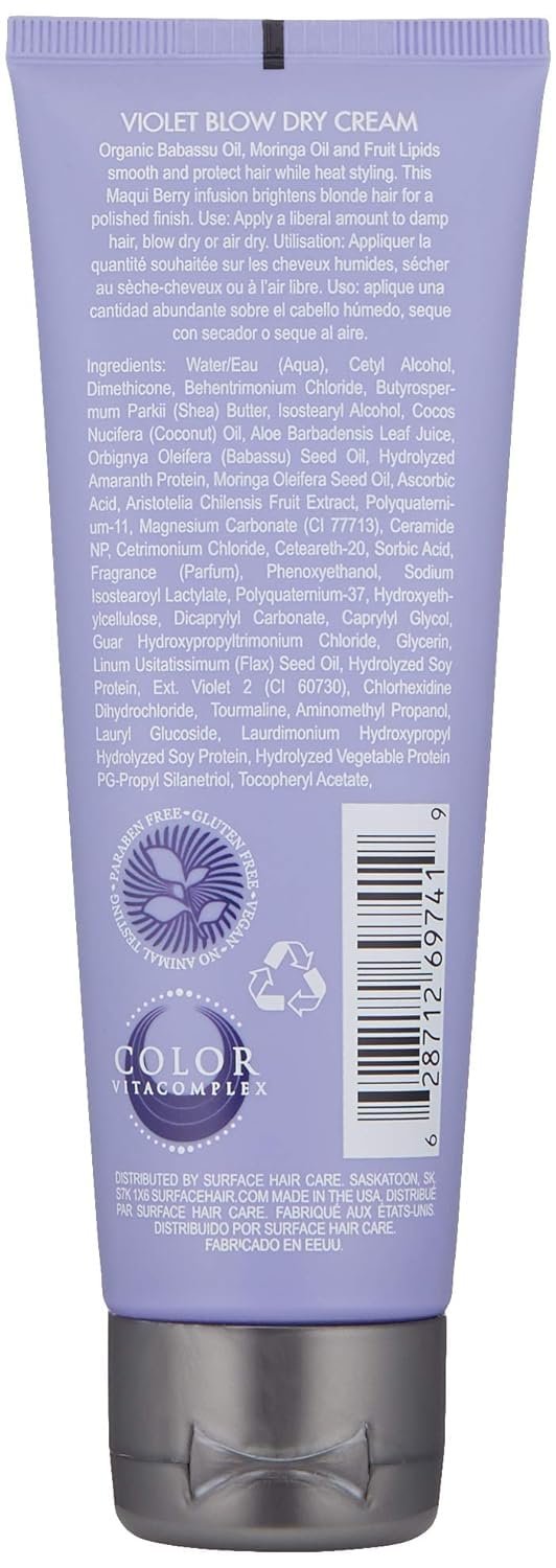 Surface Hair Violet Blow Dry Cream, Brighten, Smooth And Protect From Heat, 4 Fl. Oz.