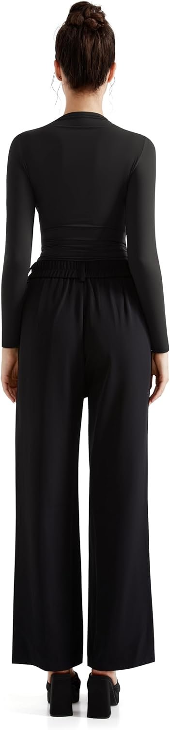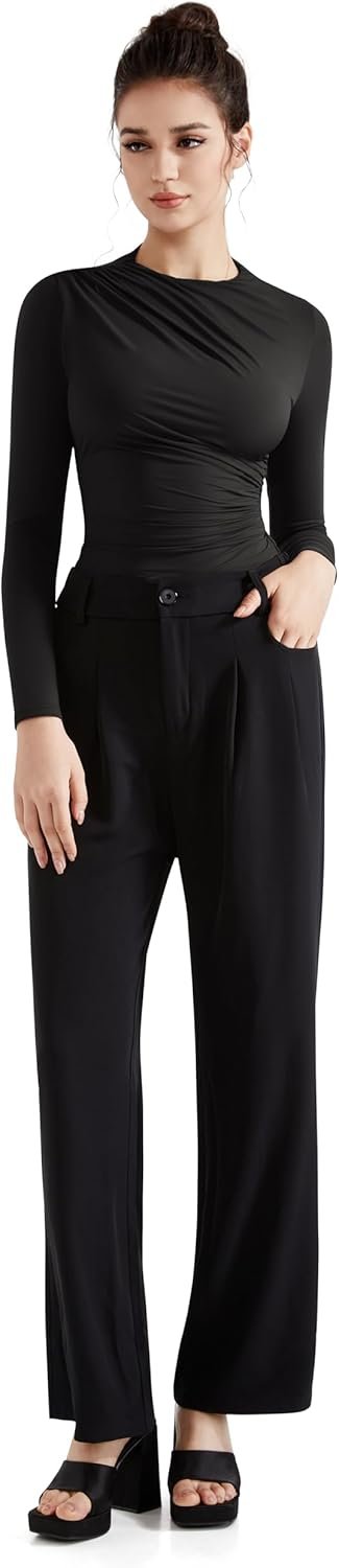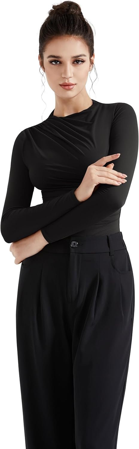 SUUKSESS Women Business Casual Long Sleeve Tops Double Lined Basic T Shirts