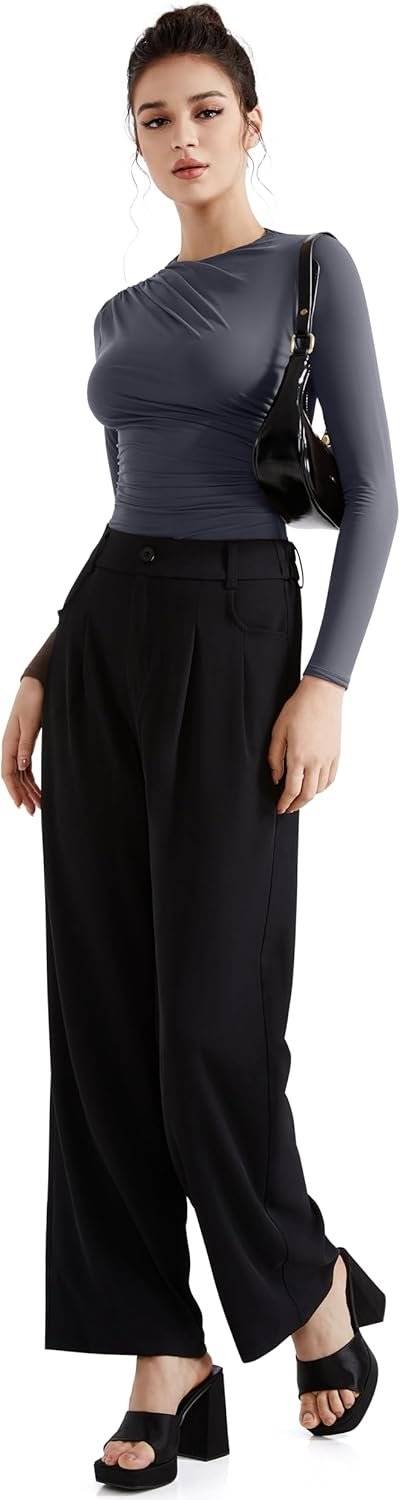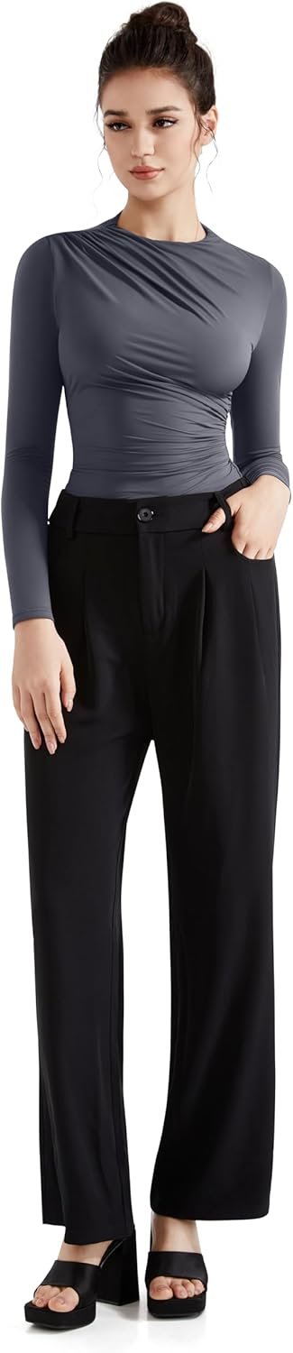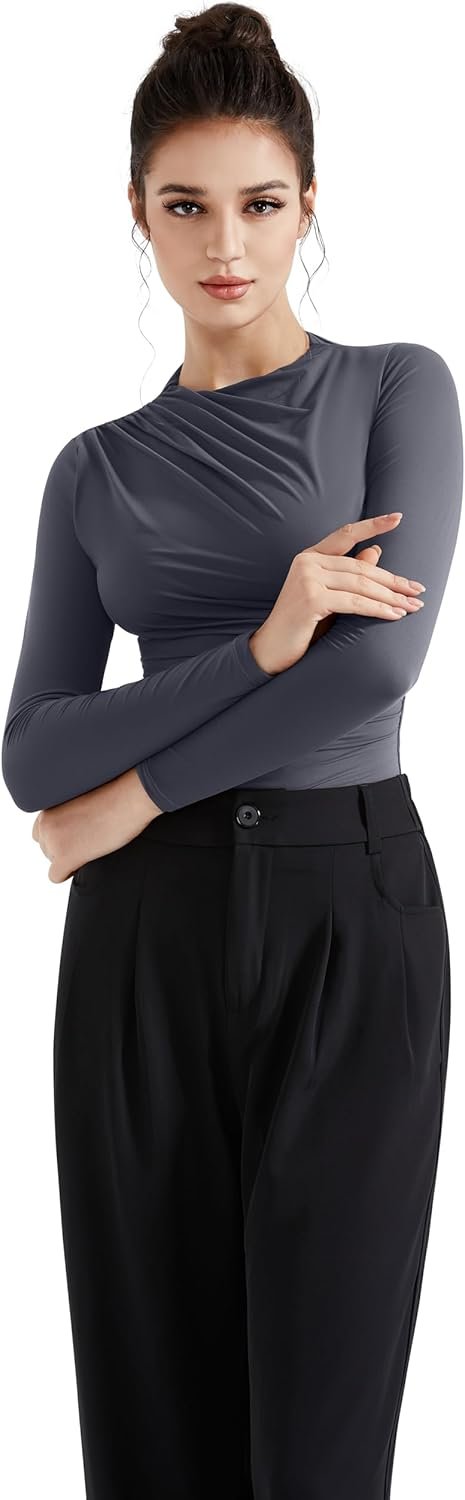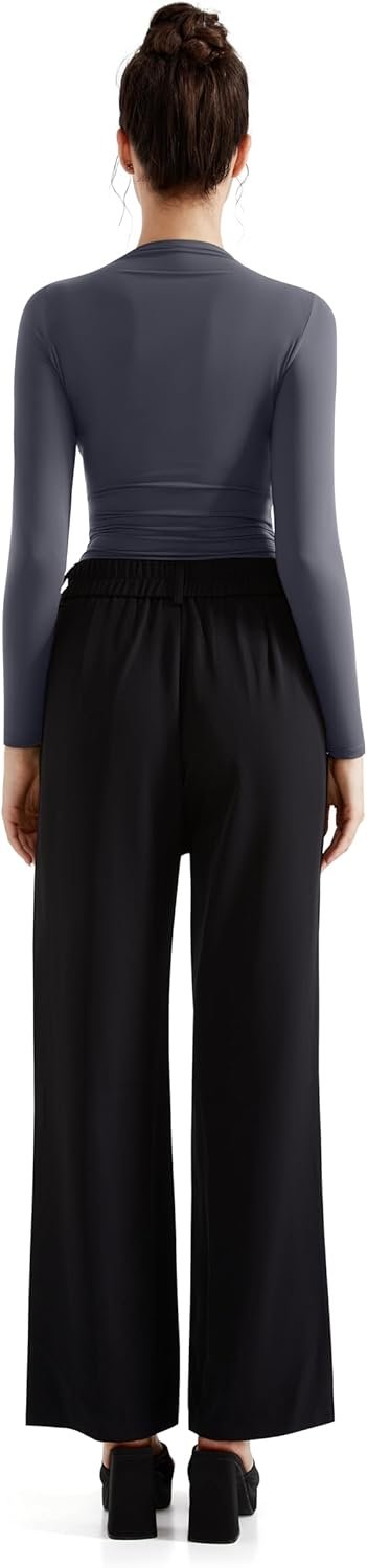 SUUKSESS Women Business Casual Long Sleeve Tops Double Lined Basic T Shirts