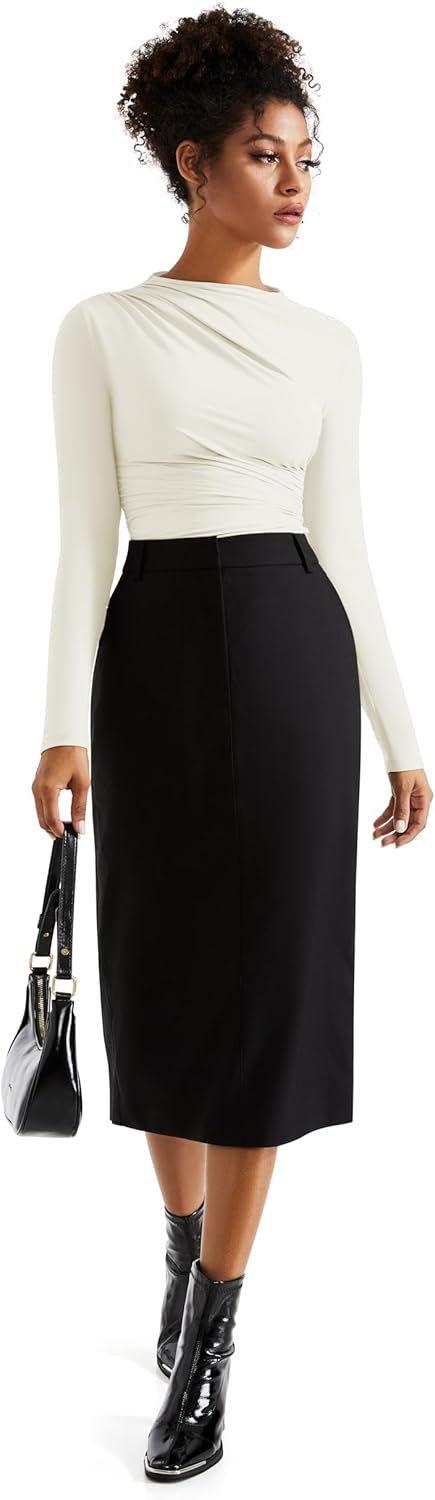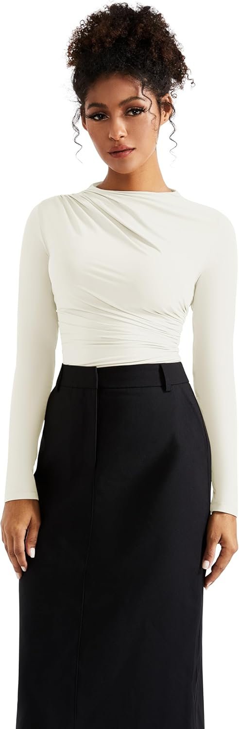 SUUKSESS Women Business Casual Long Sleeve Tops Double Lined Basic T Shirts