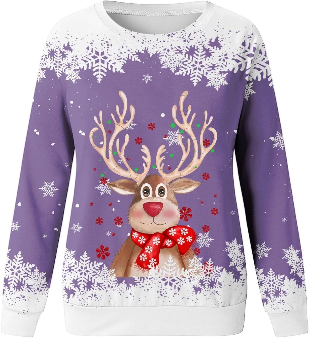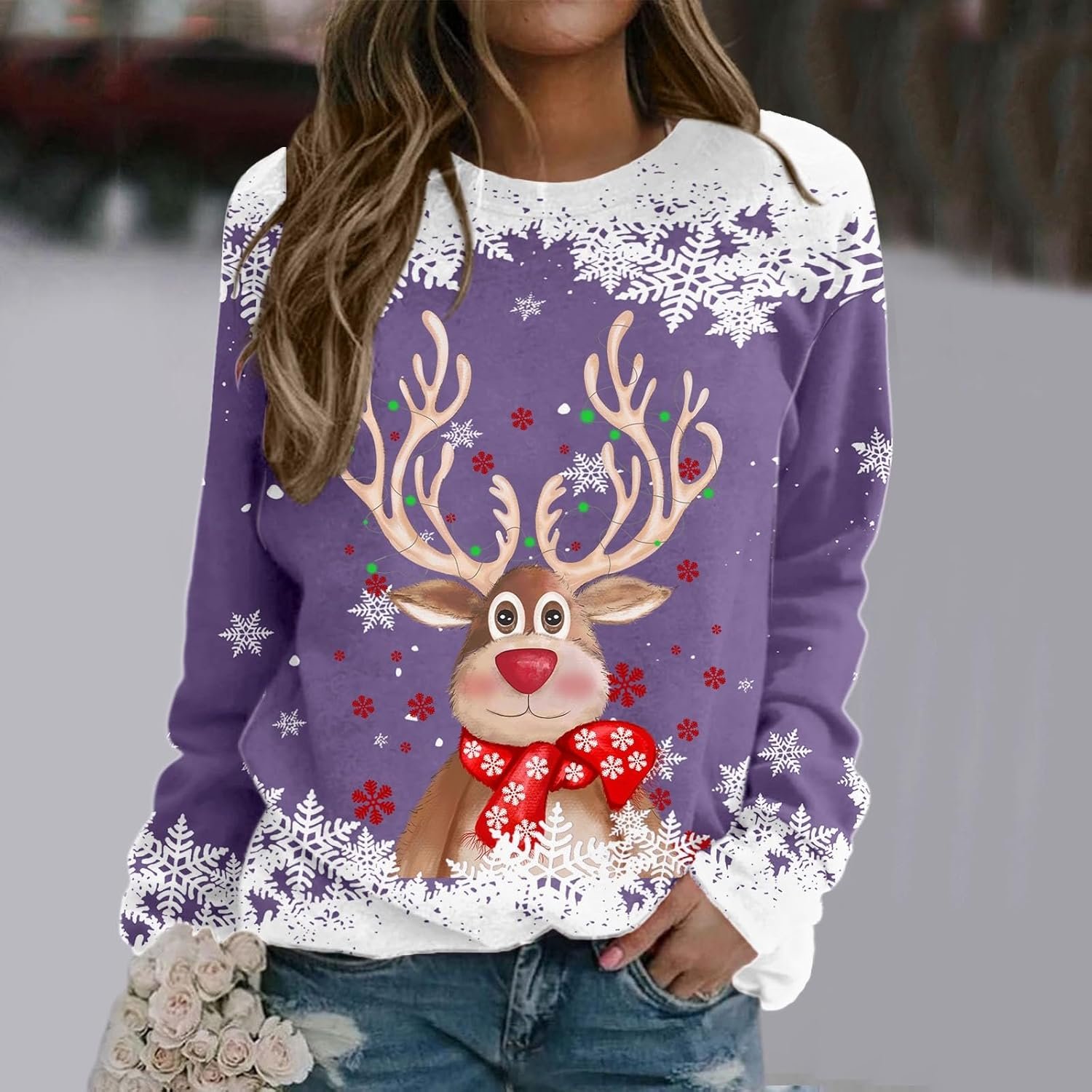 Sweaters For Women Christmas Teen Girls Long Sleeve Crewneck Sweatshirt Cute Reindeer Graphic Xmas Shirts plus