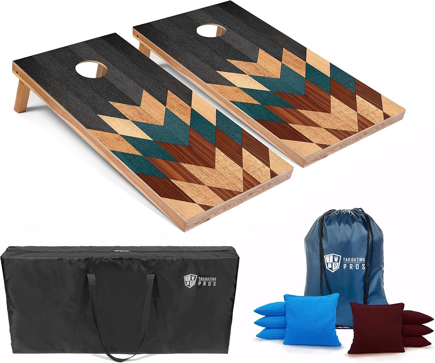 Tailgating Pros Lightweight Cornhole Boards – 4’x2′ Modern Wooden Designs Cornhole Game w/Carrying Case & Set of 8 Corn Hole Bean Bags w/Tote