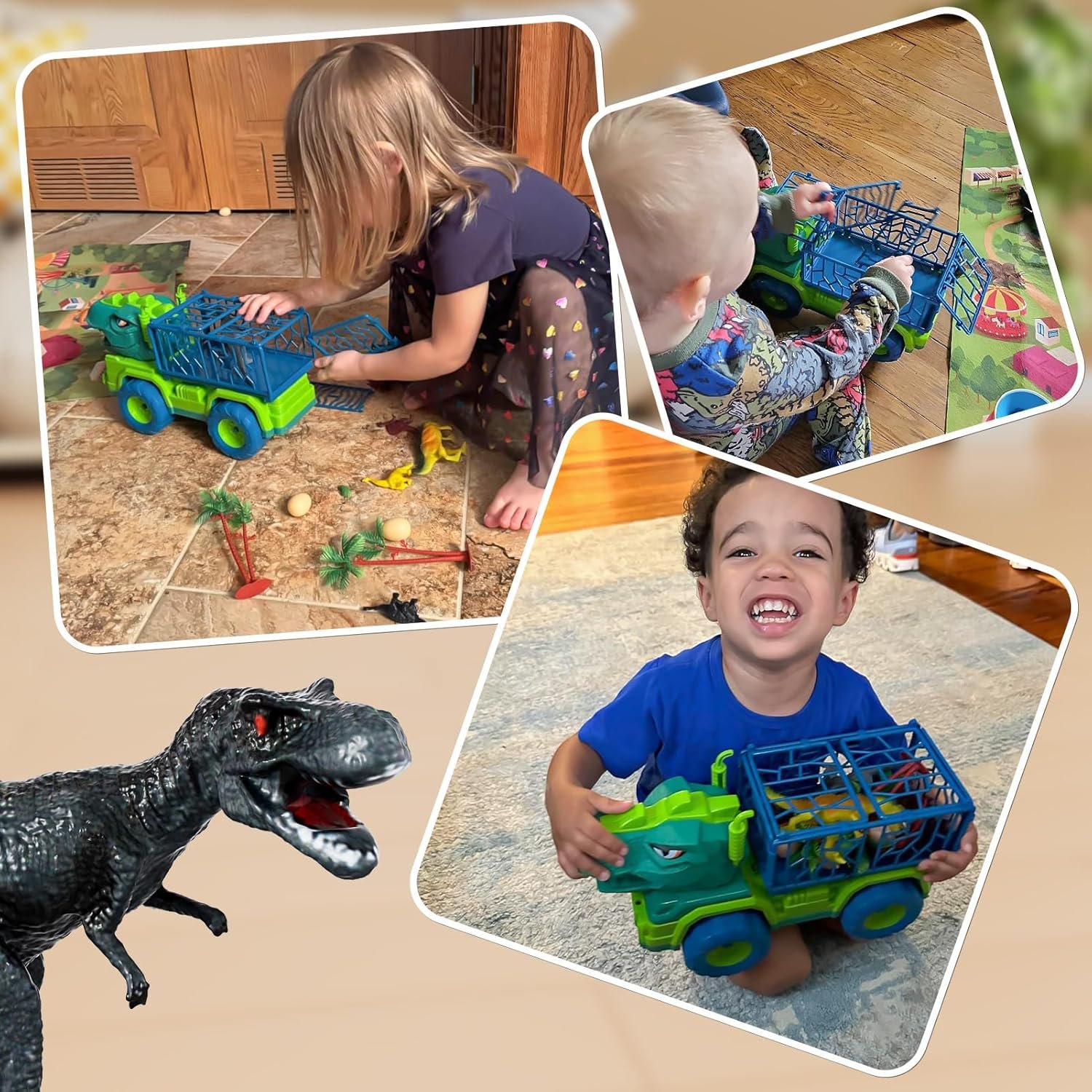 TEMI Dinosaur Truck Toys for Kids 3-5 Years, Tyrannosaurus Transport Car Carrier Truck with 8 Dino Figures, Activity Play Mat, Dinosaur Eggs, Trees, Capture Jurassic Play Set for Boys and Girls