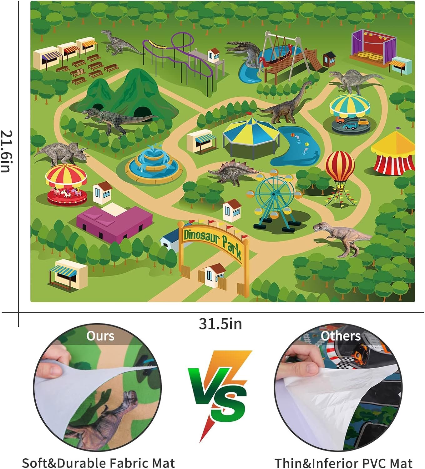Dinosaur Theme Play Mat: A dinosaur park activity play mat help kids to build their own dinosaur world easily. Mat size is 70*80cm, it is large enough for 2-3 kids to play on the ground.
