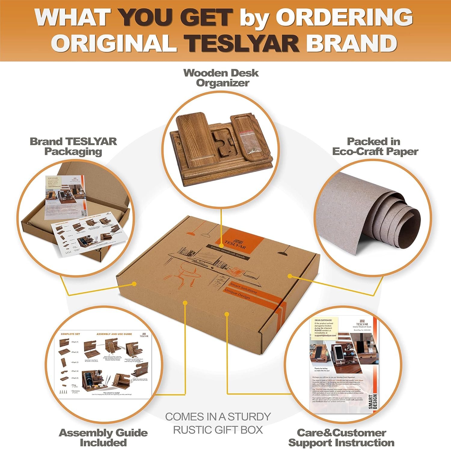 TESLYAR Wood Phone Docking Station for Men – Desk Accessories & Workspace Organizer – Nightstand Organizer – Birthday Gifts for Men or Dad – Idea for Anniversary – Key Holder – Stand Watch (Beige)