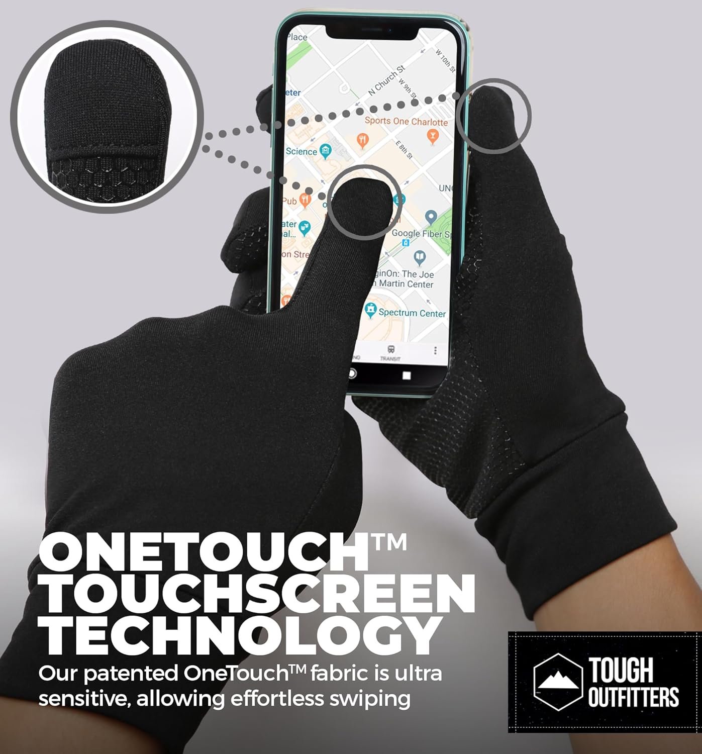 Tough Outdoors Running Gloves for Men & Women – Winter Glove Liners & Touchscreen Gloves – Lightweight Gloves & Hiking Gloves
