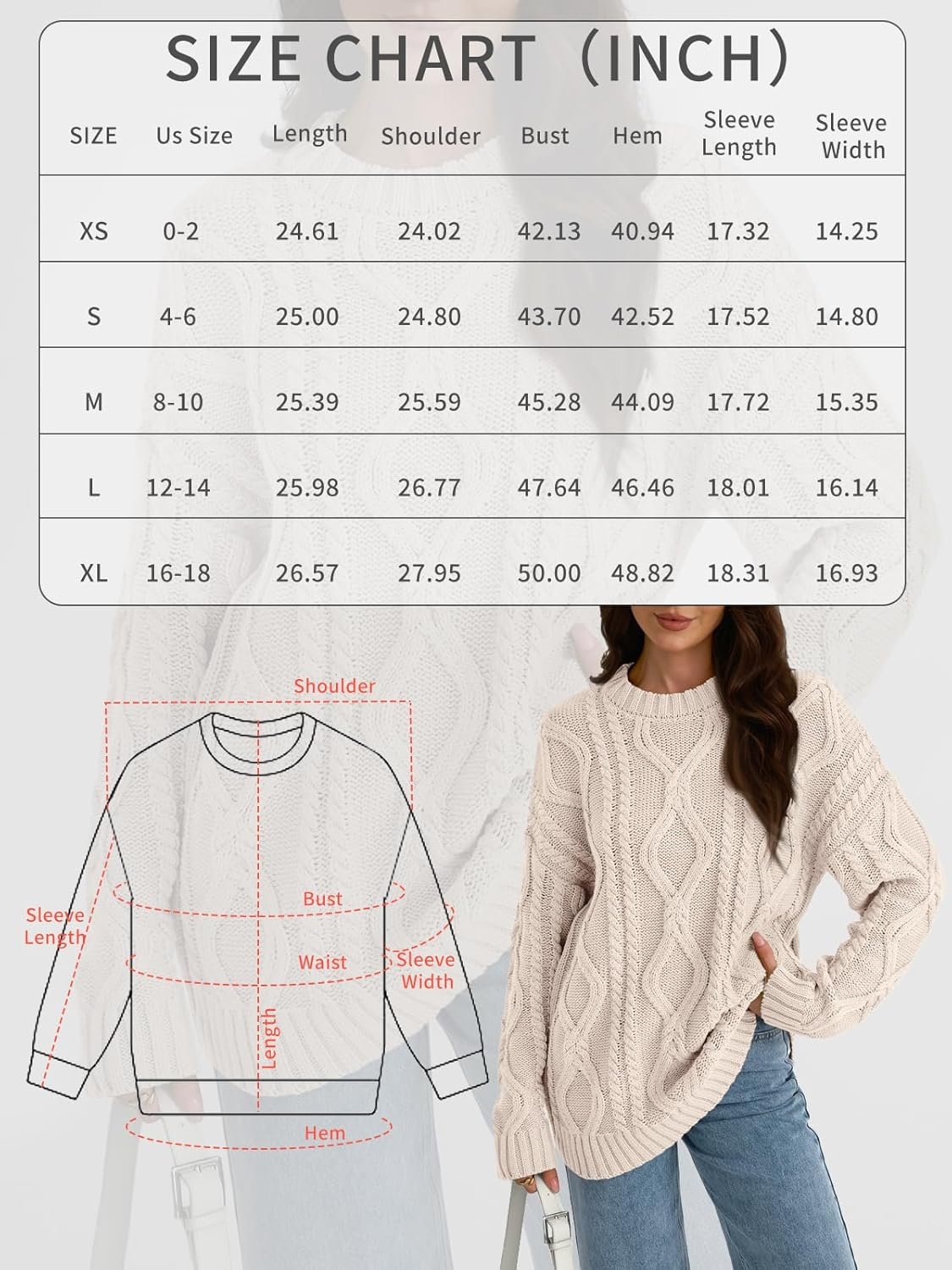 Trendy Queen Women’s Oversized Cable Knit Crewneck Sweaters