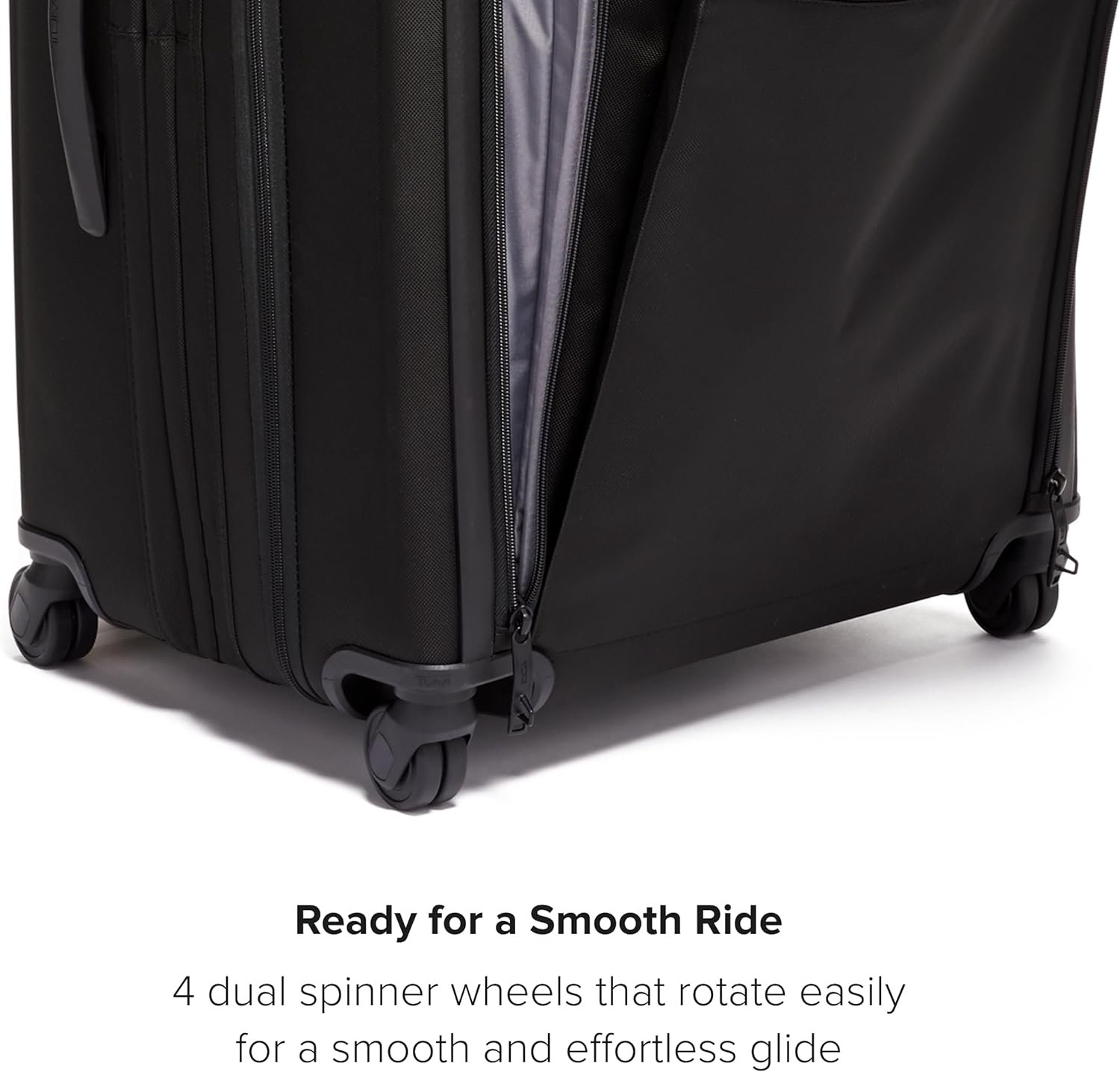 Travel in comfort and style with the TUMI Alpha Medium Trip Expandable 4-Wheeled Packing Case. Crafted from durable FXT ballistic nylon, this black TUMI suitcase with wheels combines sophistication with durability. The four dual-spinner wheels ensure smooth navigation through terminals, making it perfect for those on the move. A sturdy and professional travel option, it stands out for its resilience.The expandable luggage feature is a traveler’s ally, offering extra packing room when required. Utilizing the Lever Lock expansion system, this spinner luggage adjusts to your travel needs, be it for a light pack or an extended trip. Inside, numerous pockets and a removable garment sleeve ensure organized and accessible belongings. Every aspect, from the sturdy side grab handle to the retractable top grab handle, prioritizes your convenience, making it an ideal choice for both business and leisure travel. This trip suitcase is a versatile and dependable companion for any journey.This travel suitcase with wheels prioritizes security, boasting a built-in TSA combination lock to safeguard your belongings throughout your journey. Our TUMI luggage’s robust, molded, impact-resistant side panels and protective bumper rails provide peace of mind, making it a reliable choice for travel. Crafted from ballistic nylon, it offers exceptional durability, while its spinner design ensures smooth and efficient transport. This spinner suitcase is the ultimate choice for the modern traveler.We design for you. Our commitment to exceptional quality and high performing products have made TUMI the leading lifestyle and accessories brand that travelers depend on consistently. This is what we call the TUMI Difference.By putting excellence and quality first, we are committed to creating quality TUMI products that have lifelong purpose, are supported by our rigorous testing standards, use recycled materials and our global repair network.