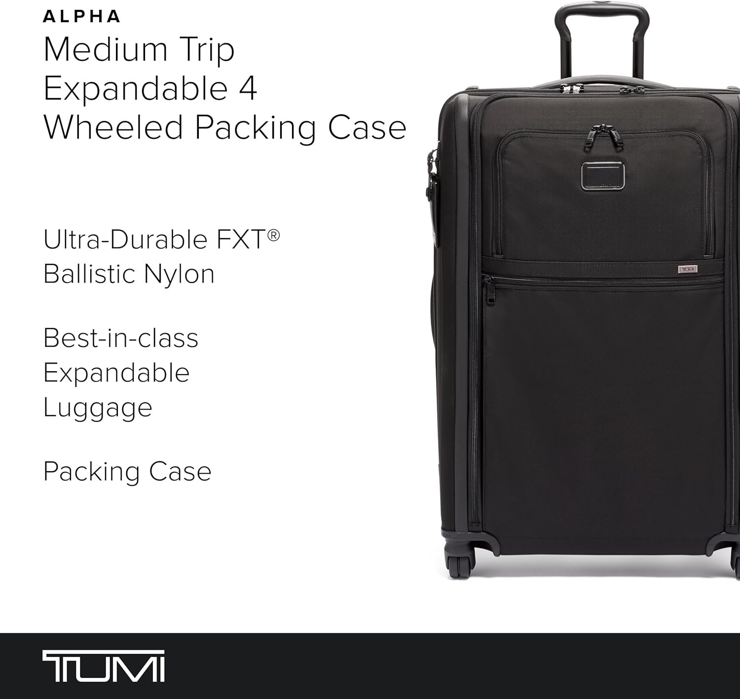 TUMI – Alpha Medium Trip Expandable 4-Wheeled Packing Case – Professional Travel Luggage – TSA Lock Tracer – TUMI Suitcase – Black