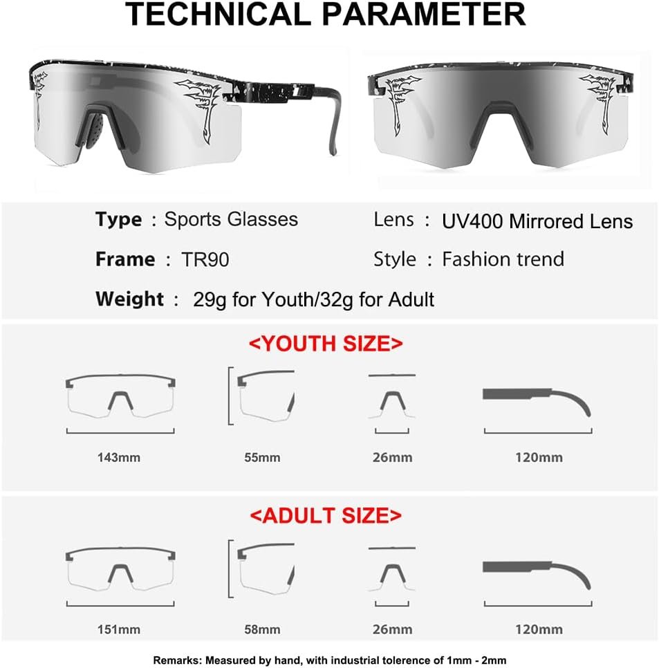 Two Sizes Baseball Sunglasses For Adults and Youth Boys Girls Kids UV400 Men Women Outdoor Sports Sun Glasses