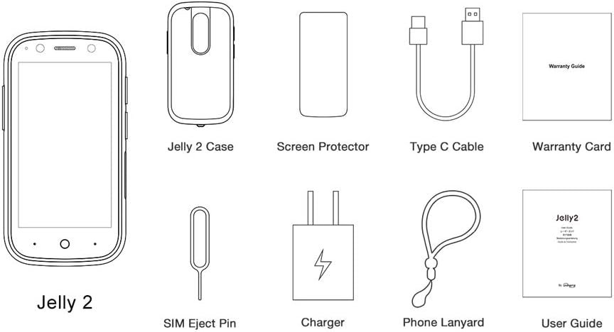 Dimensions 95*49.4*16.5mm Weight 110g (with battery) Color Dark Green Operating system Android 11 CPU Helio P60 Octa Core, 2.0GHz RAM + ROM 6GB + 128GB Battery Non-removable 2000mAh battery Display Size 3.0 inch Resolution 480*854 pixels Camera 16MP AF + 8MP FF Band: GSM: Band 2/3/5/8 WCDMA:1,2,4,5,6,8,19 TDSCDMA: Band 34/39 FDD/TDD LTE: B1/2/3/4/5/7/8/12/13/17/18/19/20/25/26/28A/B28B/34/38/39/40/41/66 C2K: BC0/BC1 SIM Dual SIM Dual standby Dual Nano SIM WIFI WLAN 802.11 a/b/g/n/ac 2.4GHz/5GHz WiFi Direct, WiFi Hotspot GPS GPS + Beidou + Glonass Other Features V4.2 Bluetooth, NFC, USB OTG, Micro SD, 3.5mm jack, FM Radio, USB Type C In the Box Jelly 2, Jelly 2 Case, Screen Protector, Charger, Type C Cable, SIM Eject Pin, Phone Lanyard, User Guide