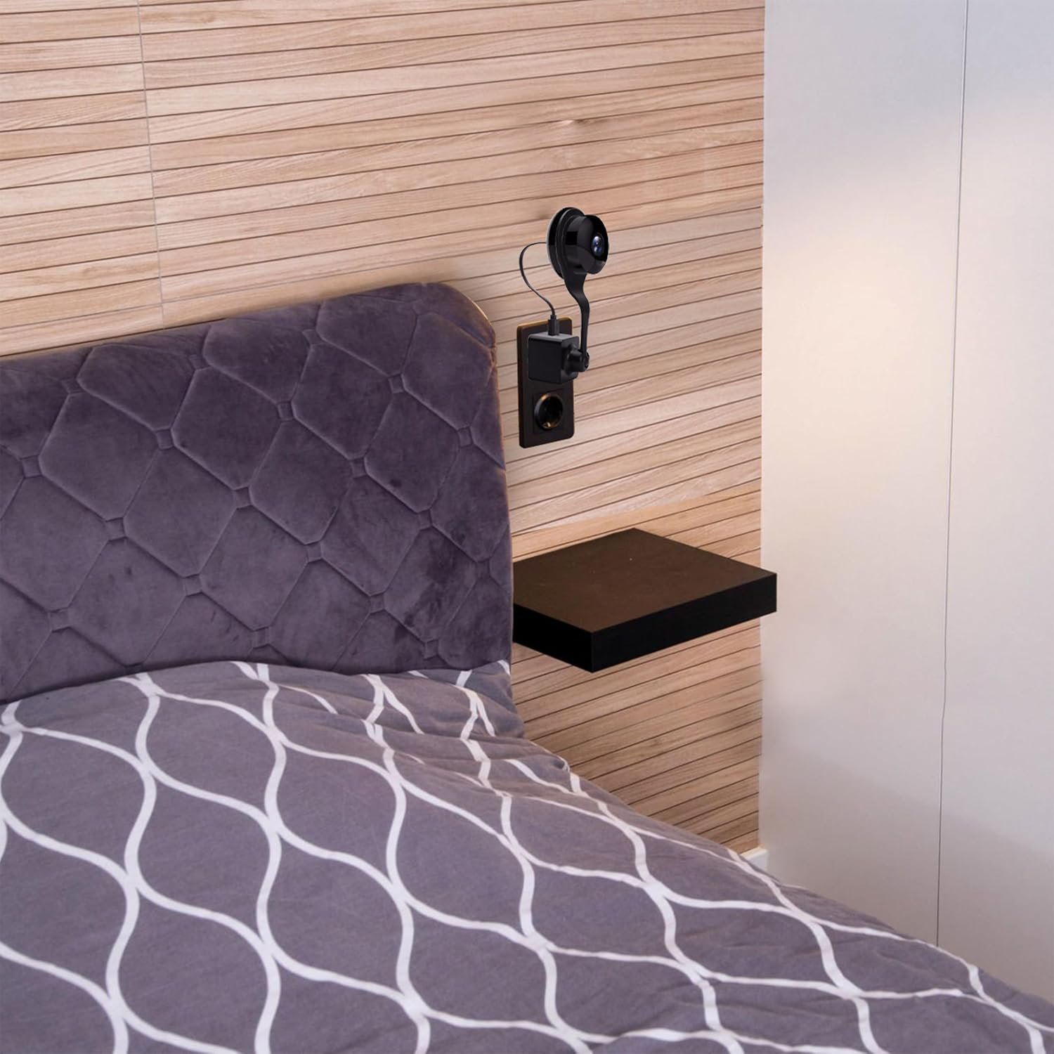 Brings a balance between utility and aestheticsUniversal design ensures flexible and quick installationEasy installation without drilling any holes on your walls, just plug and playCan be placed anywhere without taking up your space. The 360-degree ball joint lets you swivel the camera angle freely to capture the entire room