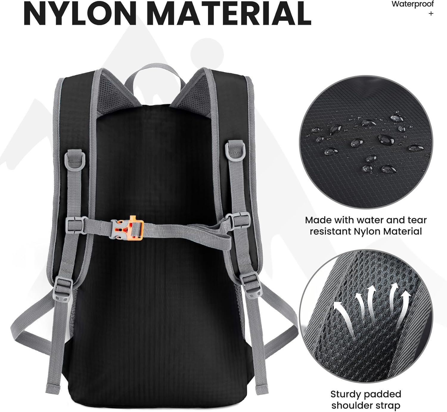 VERSATILE.This foldable backpack easily packs into its front pocket for compact storage and quickly unfolds to full size. Perfect for travel, hiking, camping, sports, daily use, and shopping. A reliable companion for both outdoor adventures and urban outings.