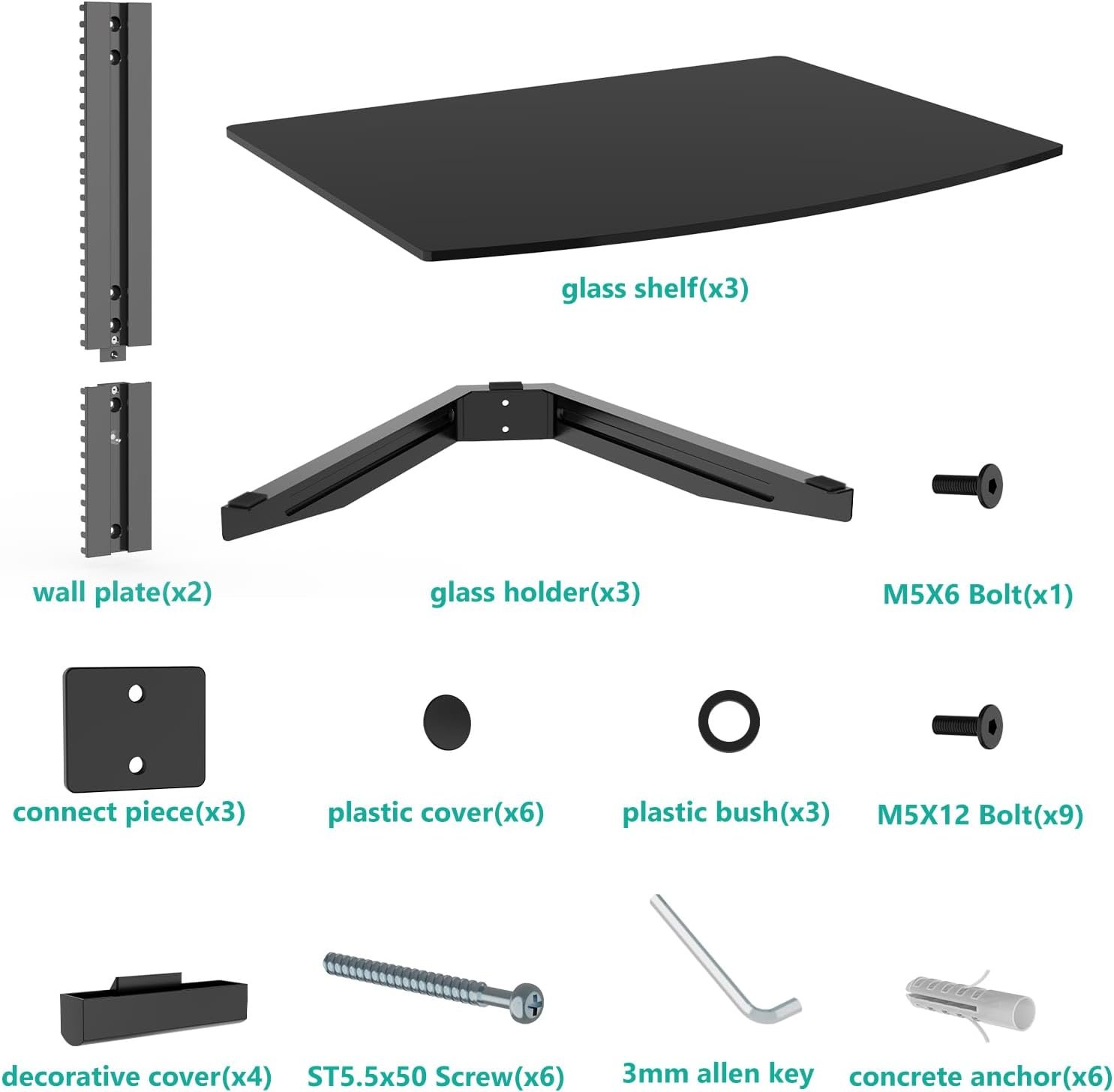 Package Includes: 1 x WALI Floating Shelf System (Black), 3 x Strengthened Tempered Glass, 1 x Mounting Hardware Kit, 1 x User Manual, experienced and friendly US based customer support available to assist 7 days a week.