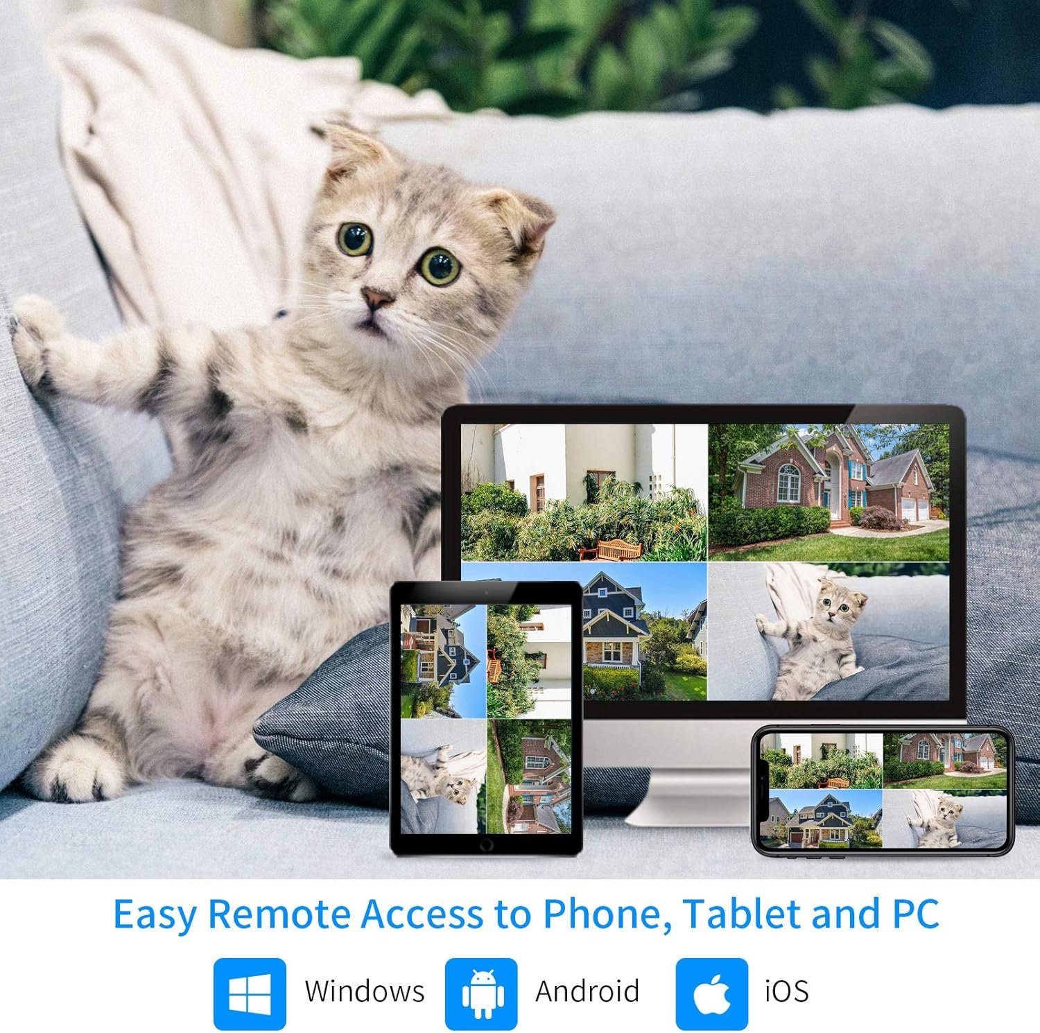 The wireless security camera system support to connect with your different devices by dual wifi, take any one device you have now to view your place!