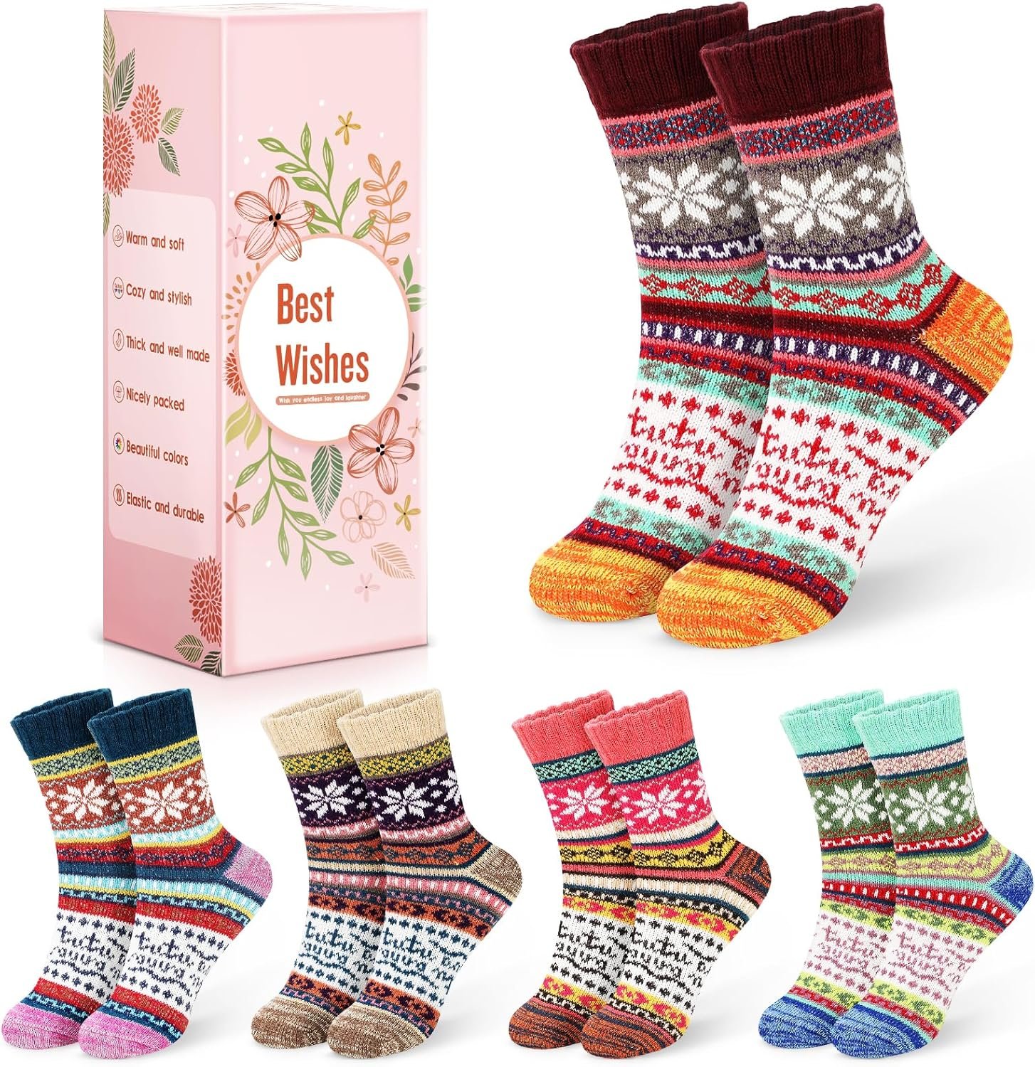 Wool Socks for Women, 5 Pairs Winter Socks for Women, Warm Socks for Women, Thermal Socks for Women Gifts Socks Women