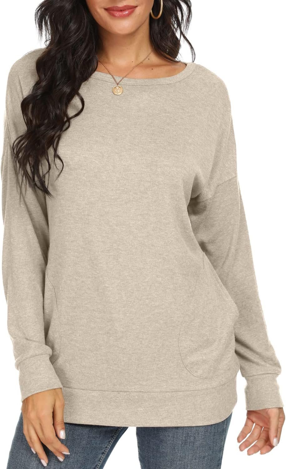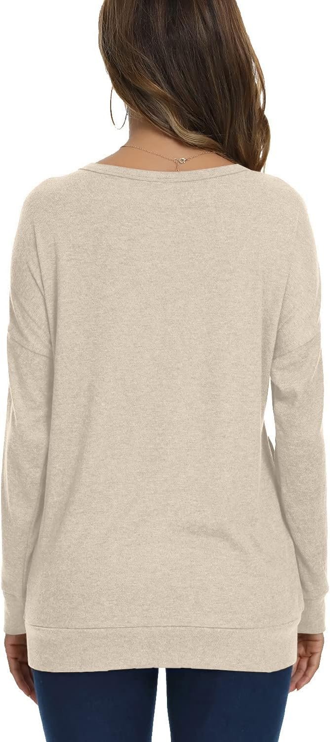 YSYOKOW Womens Fall Long Sleeve Shirts Casual Crew Neck Tunics Tops with Pockets